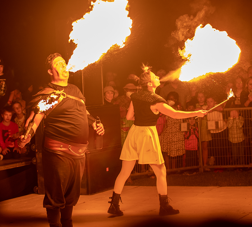 Le spectacle Duo de Feu plonge dans un univers fascinant où le feu devient art. Deux artistes exceptionnels – un cracheur et un manipulateur de feu – fusionnent leurs talents pour offrir un show intense, captivant et époustouflant. Chaque mouvement est un jeu de lumière et de chaleur, sublimé par l’énergie brute et la maîtrise des artistes. Un spectacle de cirque à la fois magique et mystérieux, où chaque instant est une invitation à l’émerveillement.